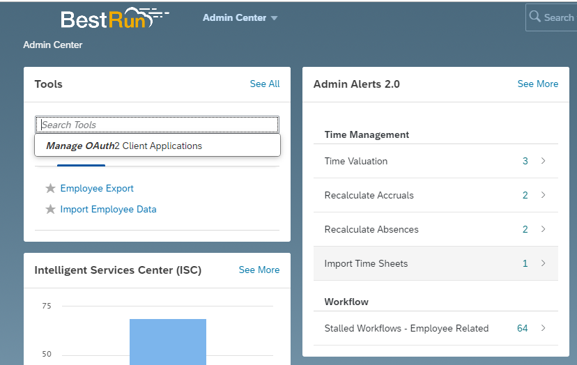 - Log into SAP Success Factors and go to Admin Center. In the Tools box, search and go to Manage OAuth2 Client Applications.