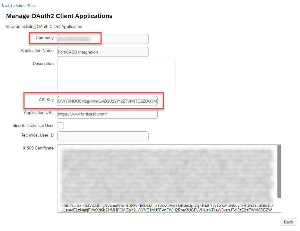 - Click on the OAuth2 Application that you just created, the API Key should be generated automatically, make a record of the API key and Company ID.