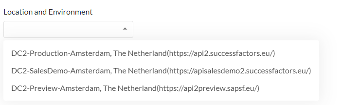 - Click Location and Environment drop down menu and select one of the location and environment: