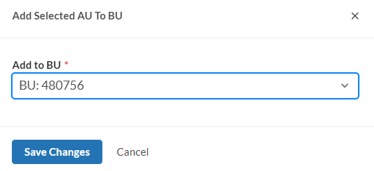 - Click Select BU drop down button and select the Business Unit ID that the Administrative Unit will be added to.