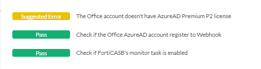 - Microsoft Entra ID P2 (formerly Azure AD P2) license is recommended. In the absence of Microsoft Entra ID P2 License, FortiCASB's Discovery feature cannot access user entitlements which leads to the following errors in the onboarding status. All other major functions on FortiCASB will not be affected.