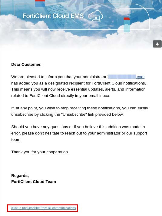 If desired, the recipient can unsubscribe by using a link in the subscription notice email.