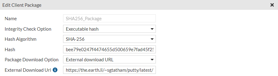 - In the External Download Url field, enter the PuTTy.exe file's external download URL. Click OK and save.