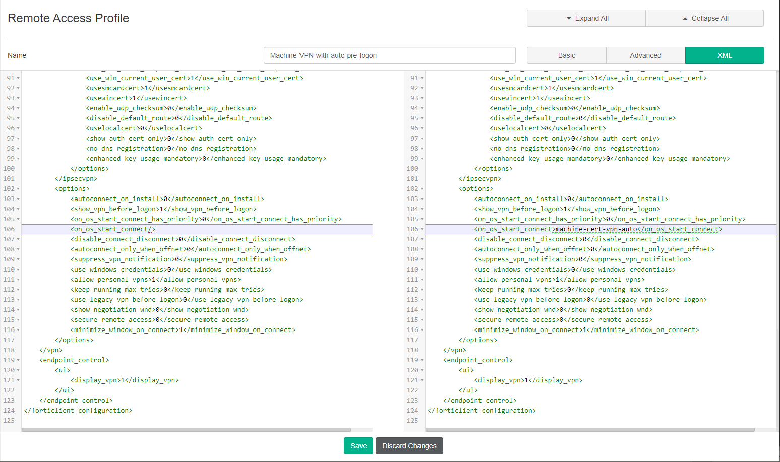 - Under Profile, change the VPN selection to Machine-VPN-with-auto-pre-logon.