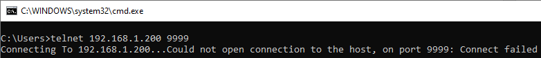 In addition to the services running correctly, there must be connectivity between EMS and the endpoint. This section defines connectivity as a route and traffic on a given port. You can use Command Prompt and the built-in Telnet application to verify this. Ensure that Telnet is enabled on your device by going to Control Panel > Turn Windows features on or off, and ensuring that the Telnet Client checkbox is selected. In this example, 192.168.1.200 is the EMS server IP address, and 8013 is the port that is being checked: