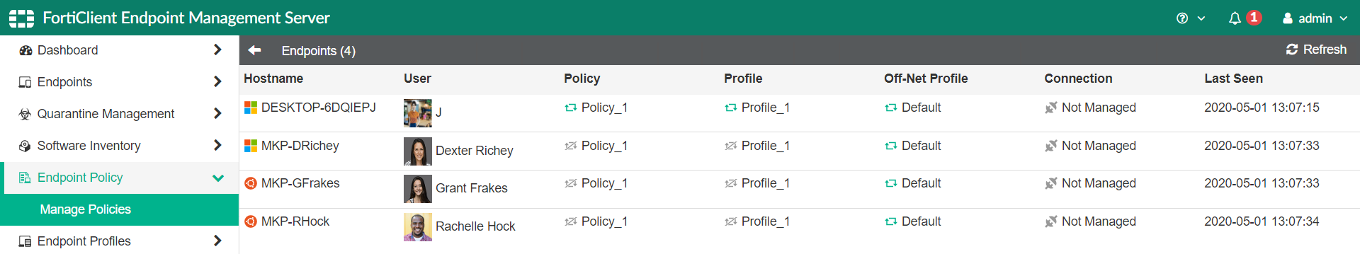 - If a policy is assigned to the FortiClient user, EMS assigns that policy to the endpoint.
