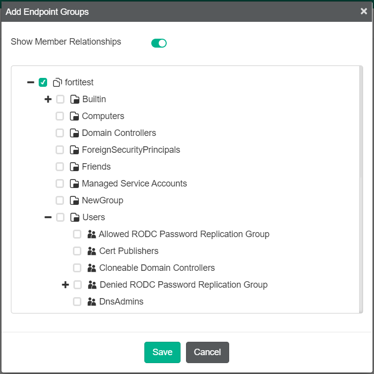- In the Endpoint Groups field, click Edit. In the Add Endpoint Groups dialog, select the desired device and/or user groups. Click Save.
