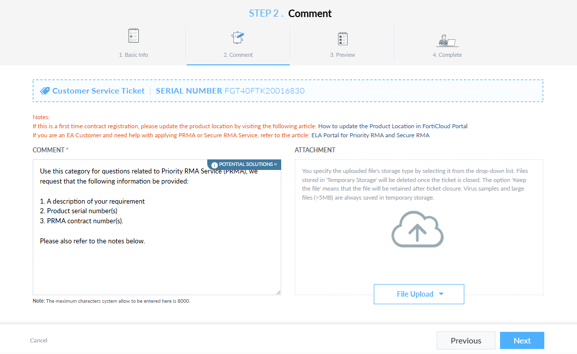 Additional information is required in the Comment field if you are intending to create a PRMA ticket. See Requesting PRMA tickets for more information.