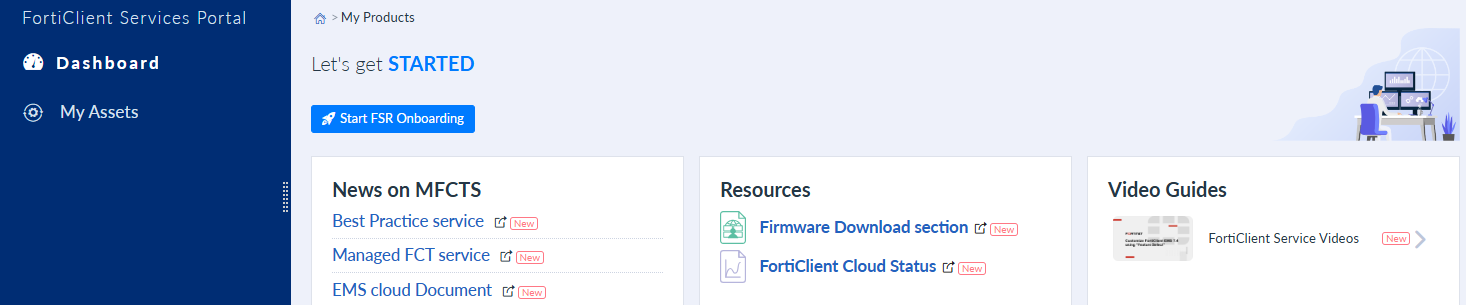 If a FortiClient Best Practice Services (BPS) license has been registered in the account, you can access the FortiClient Servcies portal from FortiCare.