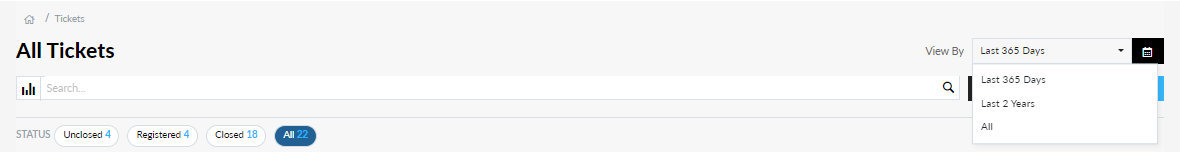 You can also restrict the number of tickets shown by selecting a date range from the View By dropdown list or calendar.