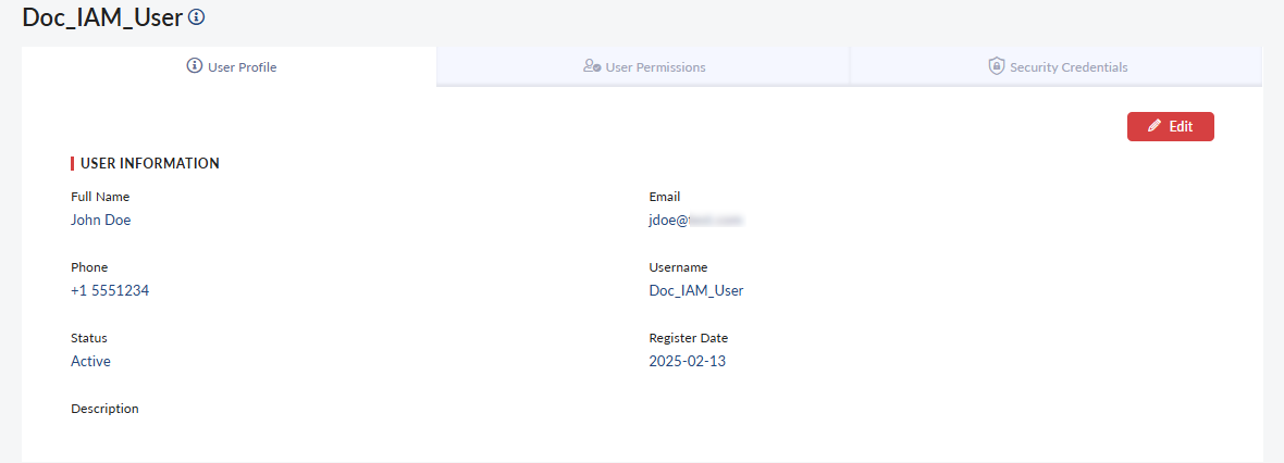To update the user name, ID, email, and status, go to the User Profile tab.