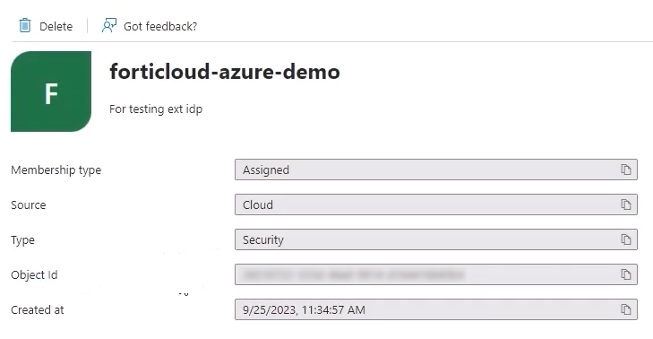 In the FortiCloud IAM portal, create an external IdP role with the role Name set to the Object Id. See Adding external IdP roles.