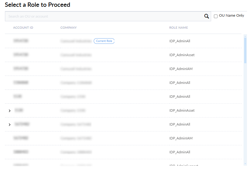 Select External IDP Role. The roles available based on your credentials are displayed.