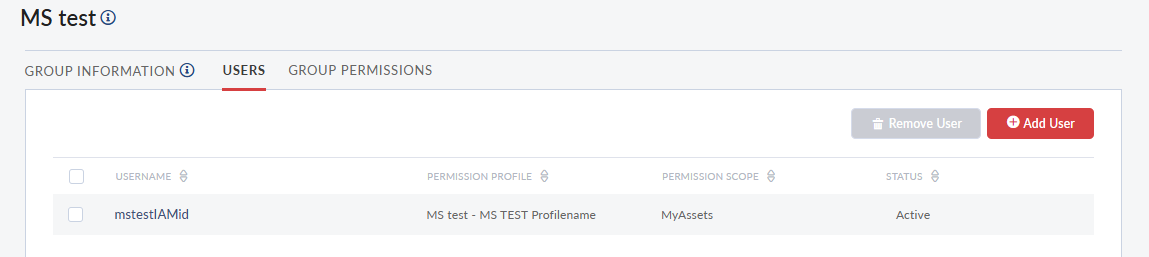 Add or remove users from the Users tab in the group details page.