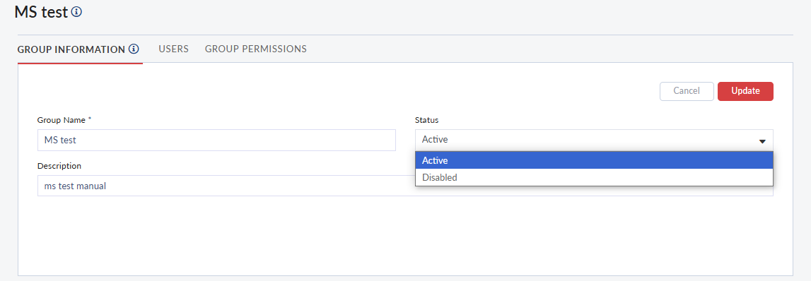 - Click Update. The group's Status changes to Active and the members' portal permissions are restored.