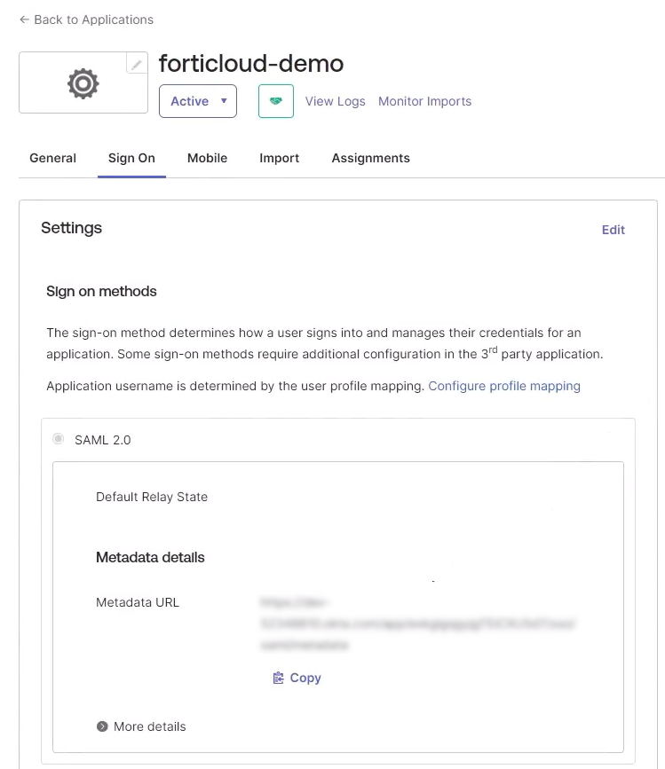 Download and share the IdP Metadata file with your Fortinet sales representative.