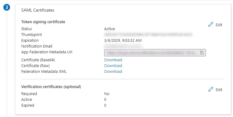 Download the Federation Metadata XML file from the SAML Certificates section.