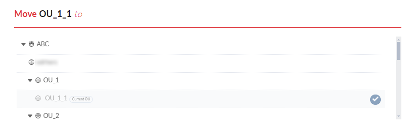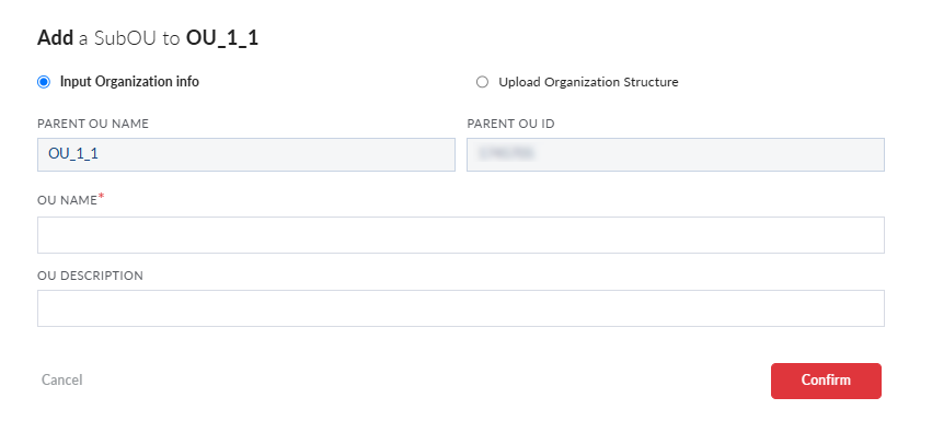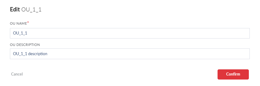 You can create up to three levels of Organizational Units (OU). After the OU is created, you can edit the organization details, move the OU or delete it.