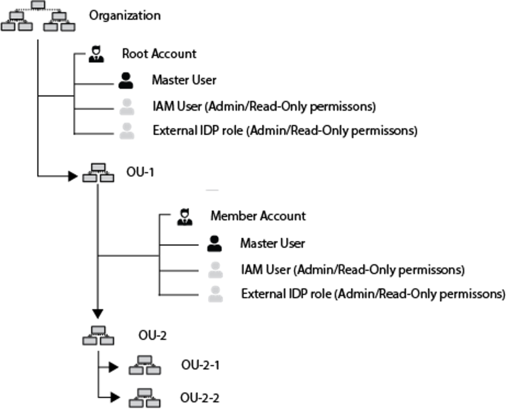 | User Type | Under each account is a different type of user: Master User, IAM User , and IDP role. |
