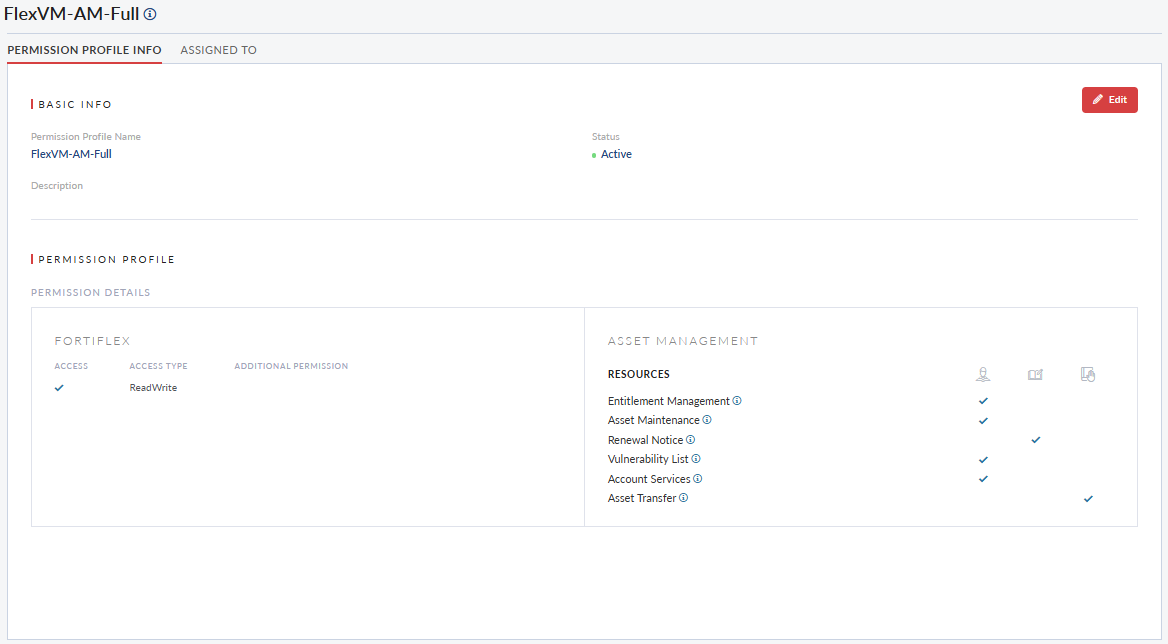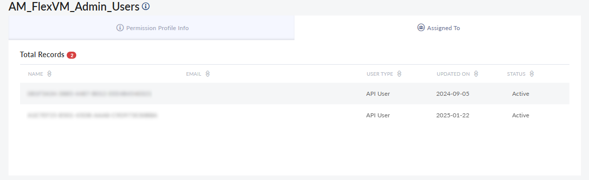 Assigned To tab: Lists all user accounts linked to the permission profile.