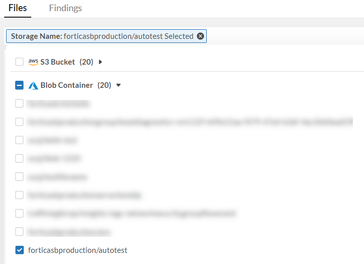 to filter the findings. - The filtered files will only be from the Azure Storage: forticasbproduction/autotest.