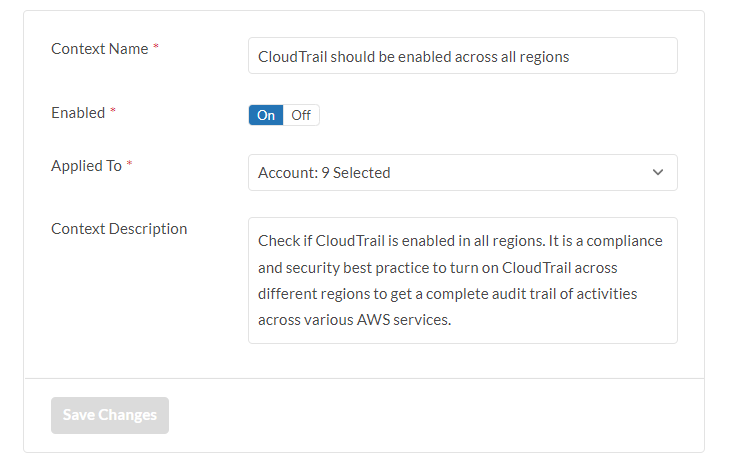 After the policy is enabled, when CloudTrail is disabled in any of the available AWS region, a finding will be generated.