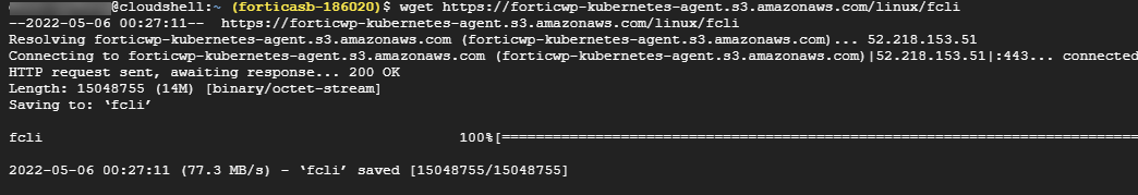 wget https://forticwp-kubernetes-agent.s3.amazonaws.com/linux/fcli - Change the permission of the fcli command line tool: