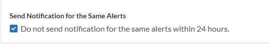 - Check Do not Send Notification for the Same Alerts within 24 hours to prevent receiving the same notification within 24 hour period.
