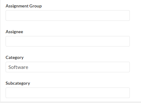 - In Category, enter one of the following values: "Inquiry/Help"(default), "Software" ,"Hardware" ,"Network", "Database", "--None--". (The values are note case sensitive)