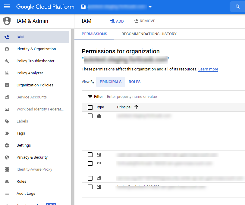 , select IAM & Admin > IAM. - Click the ADD button on the top.