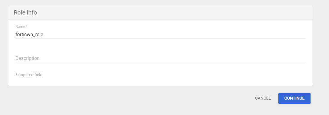 - Fill in a name for the role, a short description, and click Continue.