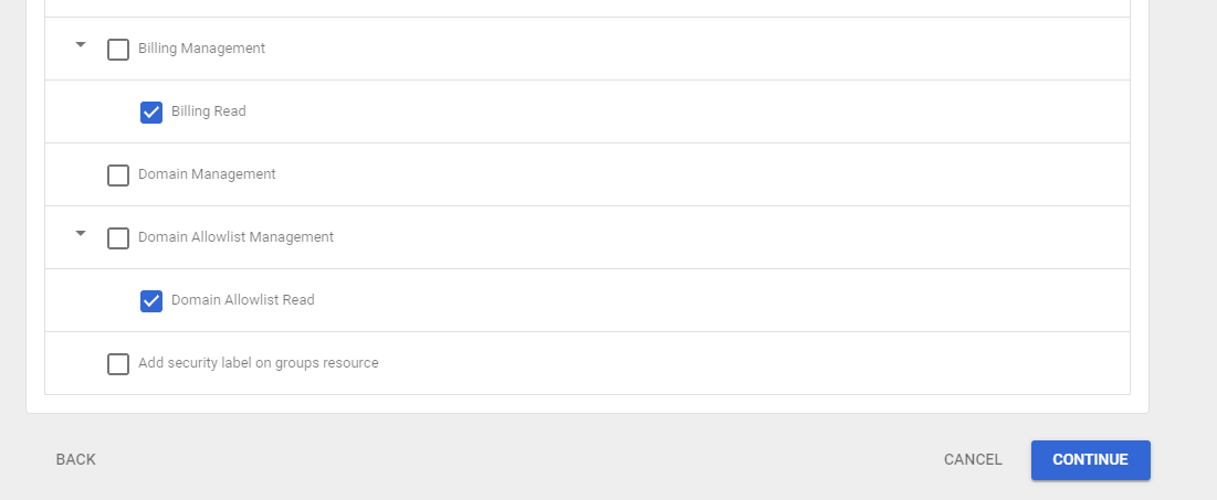 Follow the configurations below to create a Custom User Role, then assign it to a Google Workspace account user.