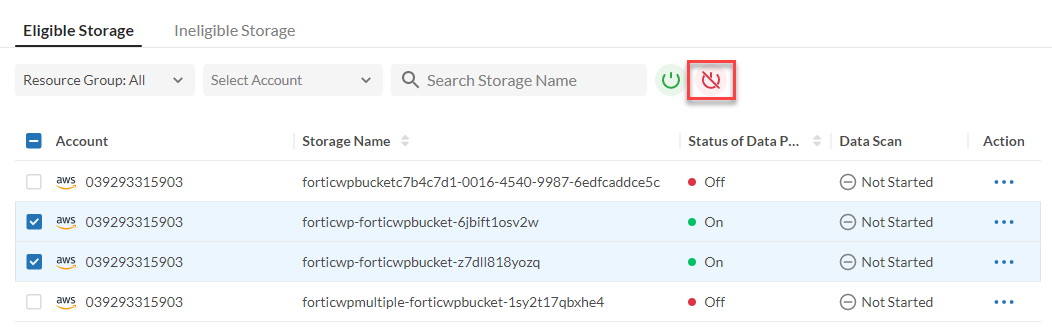 - Select the cloud storages that you want to turn off Data Protection.