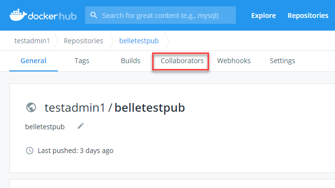 Docker Hub Collaborators allow a user to share repository access by creating a collaborator.