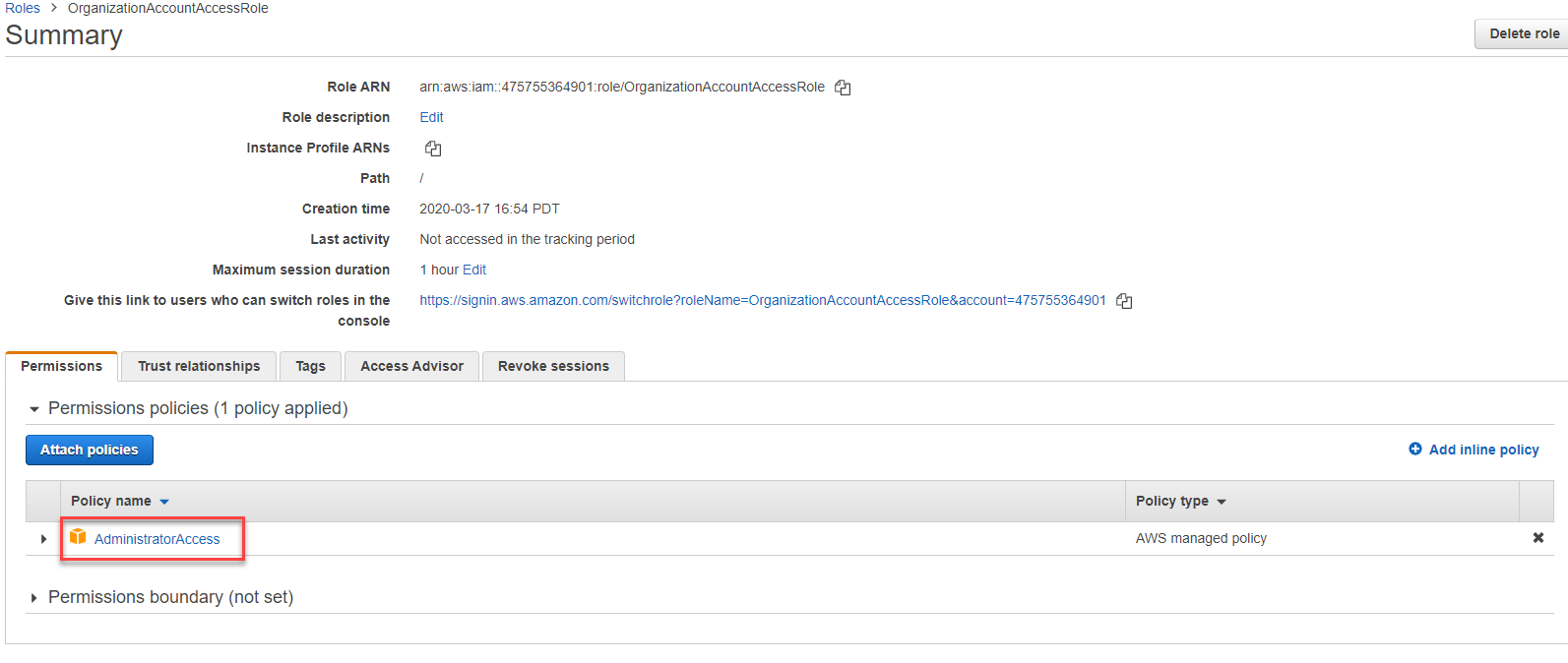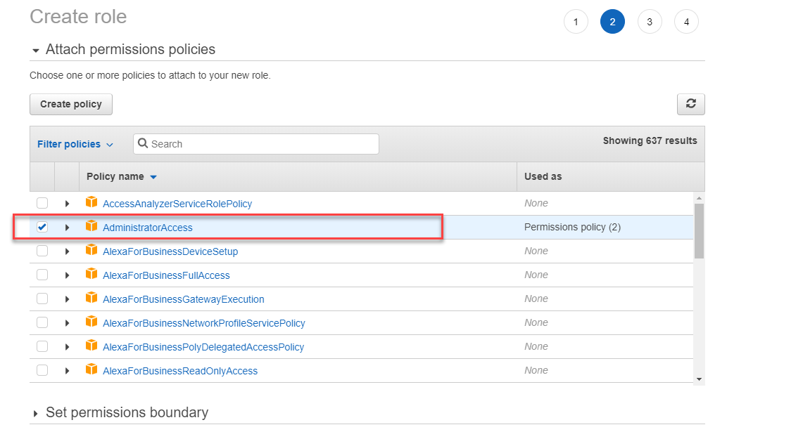 - Under Permission policies field, there should be a policy named AdministratorAccess.