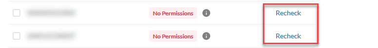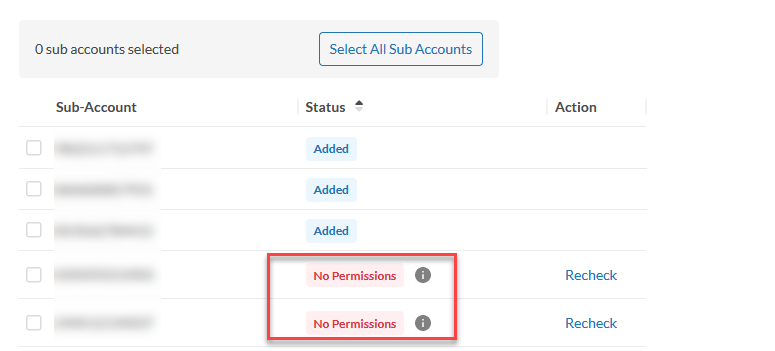 Repeat the steps above for each of the sub-account that shows No Permission status on FortiCNP, and click Re-Check.