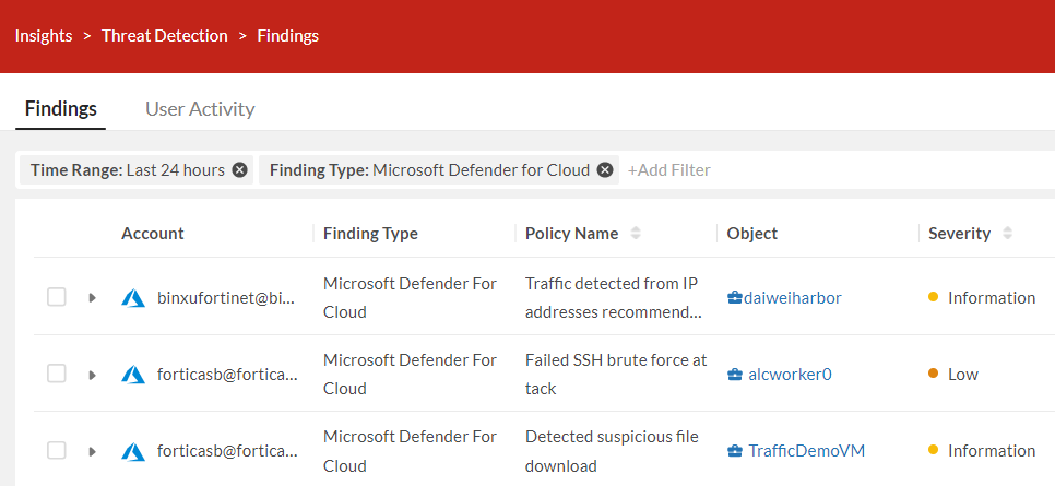 An active Microsoft Azure AD account with security policy setup is required for Microsoft Azure to provide cloud traffic data to FortiCNP. Follow the steps in Enable Microsoft Azure Integration.