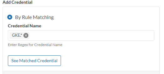 For example, enter "GKE.*" to match a credential name that starts with "GKE".