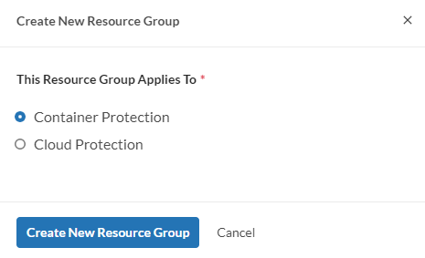 - Click +Create New, choose Container Protection, and click Create New Resource Group.