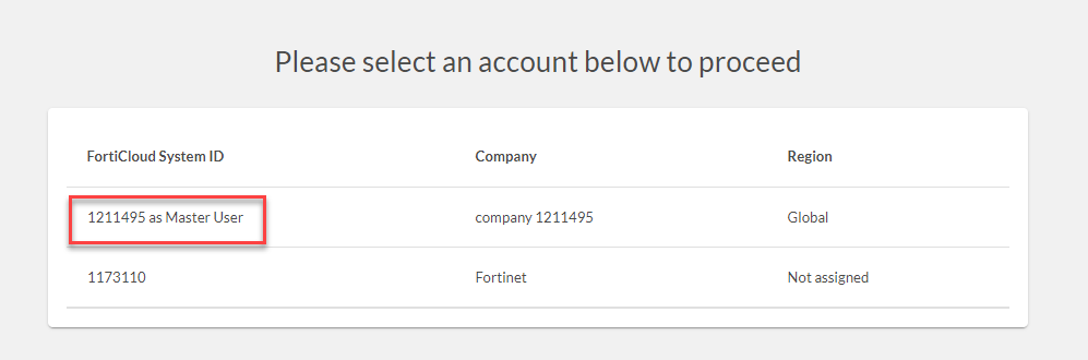 Please note that when the master account user is changed from one user to another through FortiCloud, the Cloud Protection cloud account information and license subscription will not be migrated to the new master user. Please contact FortiCare Support to resolve this issue. |