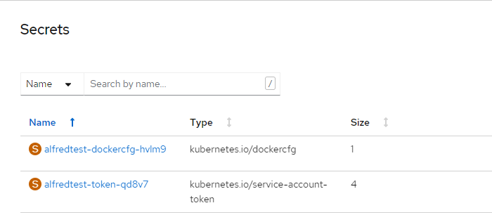- Click on the service account created previously. Scroll down to Secrets section, and click on the secret with the type "kubernetes.io/service-account-token".