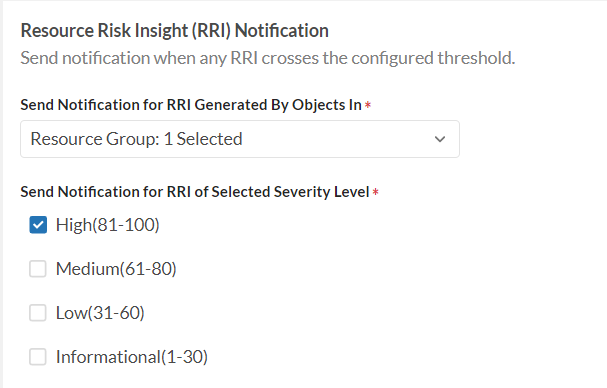 - Select Severity Level(s) of the RRI the notification will be triggered by. Only the RRI with the selected severity level(s) will send notifications.