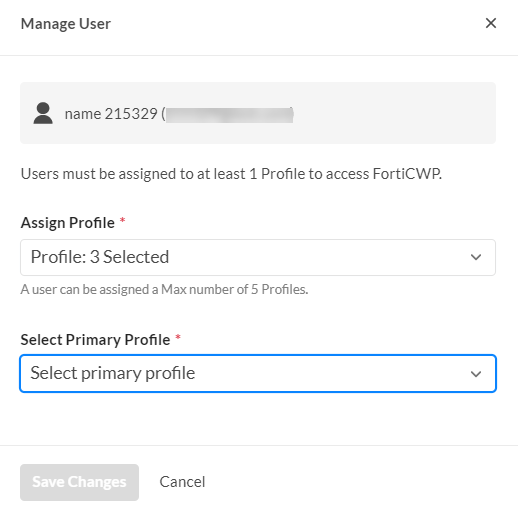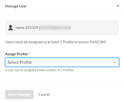 . - Click on Assign Profile drop down menu to select profile(s), multiple profiles can be selected per user.