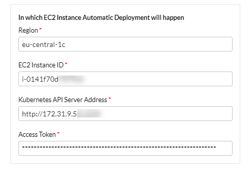 - Enter the Kubernetes EC2 instance info: