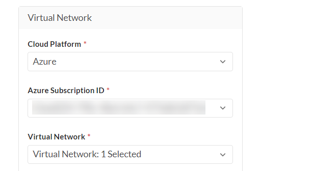 - Select the Azure Subscription ID that hosts the virtual network.