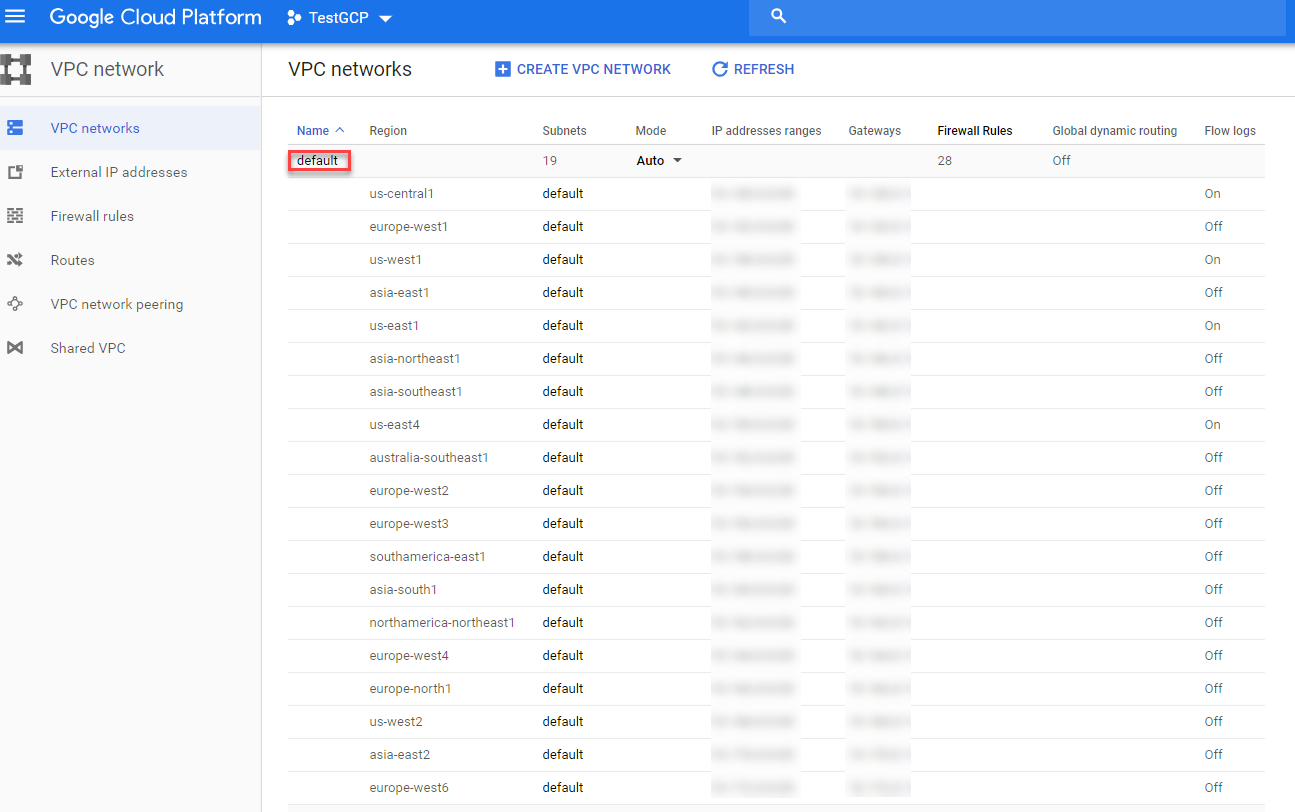- Click on top Navigation button and select VPC networks > VPC networks.