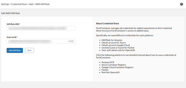- Enter the IAM Role ARN and click ADD IAM Role you obtained from previous step.