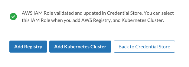 - The AWS IAM Role is successfully added to the Credential Store, and it is ready to be used to add AWS Kubernetes Cluster.
