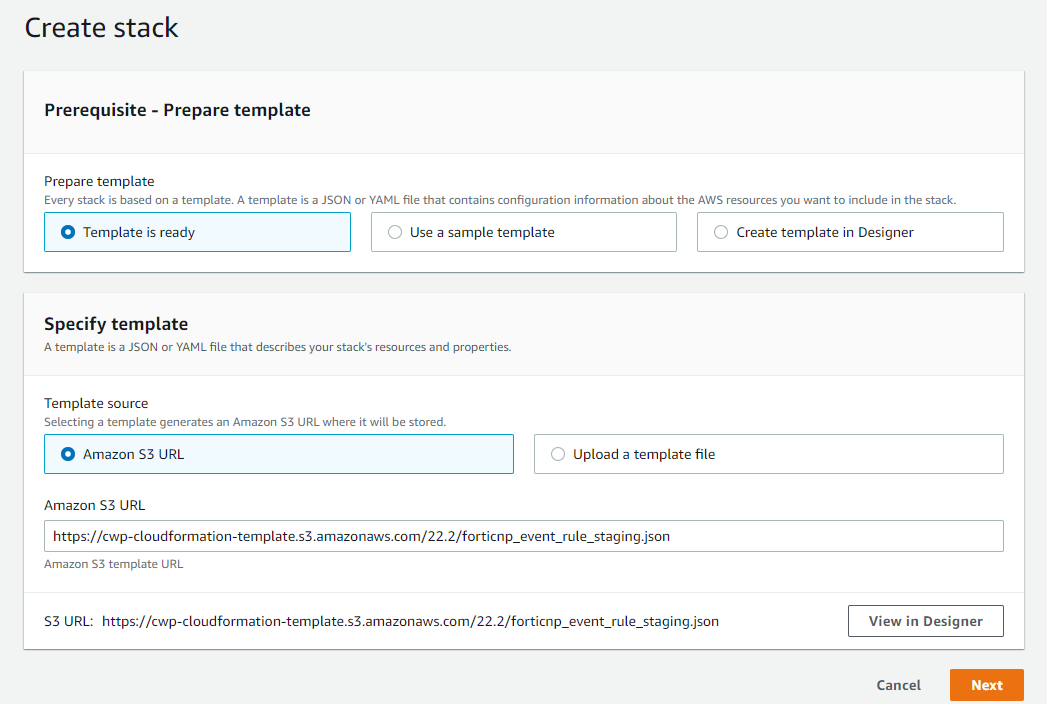 Note: If the FortiCNP stack received error and cannot be created, please see Stack Already Exists Error.