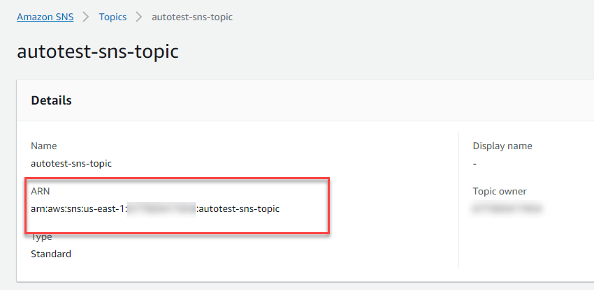 When you finish creating a new SNS topic, copy the SNS ARN and save it for later to setup SNS notification on FortiCNP.
